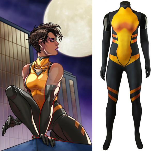 Transform into the fierce Mari McCabe with the Vixen the Movie Black & Yellow Animated Pattern Bodysuit, perfect for cosplay enthusiasts. This eye-catching bodysuit features a striking design that captures the essence of Vixen, making it a standout choice for conventions and themed events. Elevate your costume game and showcase your love for the character with this must-have piece!