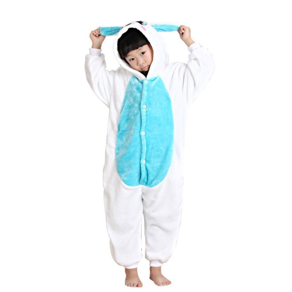 Transform your little one into an adorable blue rabbit with this Kids White Blue Rabbit Costume. This cozy onesie jumpsuit is perfect for any occasion, from Halloween to dress-up playdates. Let your child's imagination run wild with this cute and comfy blue rabbit cosplay outfit.