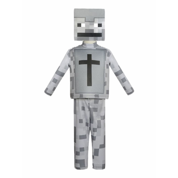 Get your little gamer ready for Halloween with this Kids Minecraft Skeleton Grave Costume. The set includes a spooky mask and detailed suit perfect for trick-or-treating. Let your child dive into the world of Minecraft with this fun and unique cosplay outfit.