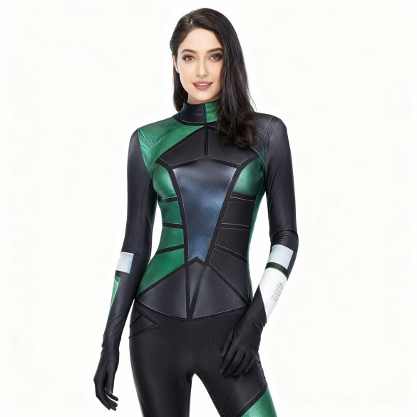 Unleash your inner villain with the Kim Possible 2019 Shego Taylor Ortega Costume, featuring a striking black and green bodysuit that captures the essence of Shego's iconic look. Perfect for cosplay events, Halloween, or themed parties, this costume ensures you'll stand out with its sleek design and vibrant colors. Embrace your fierce side and channel the ultimate Disney antagonist with this must-have Shego cosplay outfit!