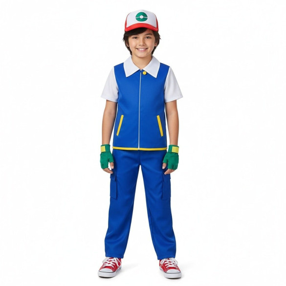 Transform into the iconic Pokemon Trainer Ash Ketchum with this vibrant costume set, perfect for cosplay events and conventions. Featuring a stylish jacket, signature hat, and gloves, this outfit captures the essence of your favorite Pokemon hero. Embrace your inner trainer and get ready to catch 'em all in this must-have Ash Ketchum costume!