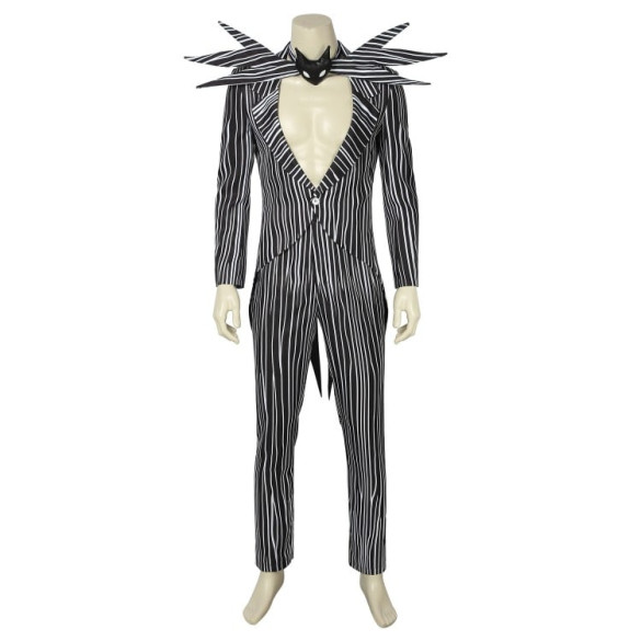 Get ready to embrace your inner Halloween spirit with the Jack Skellington Suit Complete Costume. This iconic ensemble features everything you need to transform into the Pumpkin King himself. From the tailored black pinstripe suit to the matching bat bowtie, this Halloween costume is perfect for fans of the beloved Nightmare Before Christmas character.
