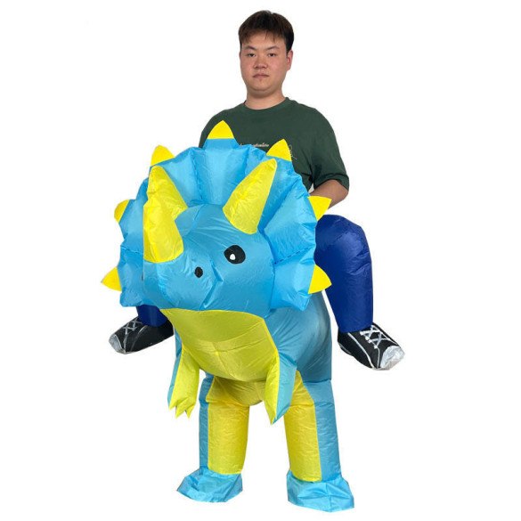 Transform your next event with the Jurassic World Riding Triceratops Dinosaur Inflatable Costume, perfect for parties and cosplay. This eye-catching inflatable costume offers a fun and immersive experience, making you the center of attention wherever you go. Embrace your inner dinosaur and bring the excitement of Jurassic World to life with this unique and entertaining outfit! Adults size fits most adults, Height 150-190cm.