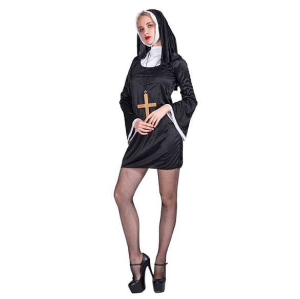Introducing our seductive Sexy Nun Costume - the ultimate blend of allure and innocence. Perfect for turning heads at any costume party or themed event, this ensemble includes a black dress with a plunging neckline and a matching headpiece. Unleash your inner temptress in this captivating attire that will make you the center of attention all night long.