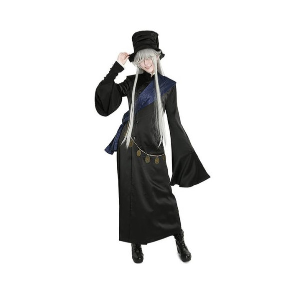Transform into the mysterious and enigmatic Undertaker from Black Butler with this stunning black robe costume. Perfect for cosplay events or Halloween, this detailed costume captures the essence of the character. Make a statement at your next event with this unique and eye-catching Undertaker ensemble.