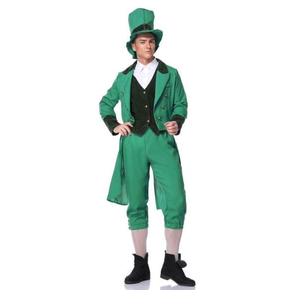 Get ready to celebrate St. Patrick's Day in style with our Men's Saint Patricks Leprechaun Costume. This high-quality outfit features all the elements you need to channel your inner leprechaun, including a charming green velvet jacket, matching hat, and versatile pants. Perfect for parades, parties, or pub crawls, this costume will surely bring the luck of the Irish wherever you go.