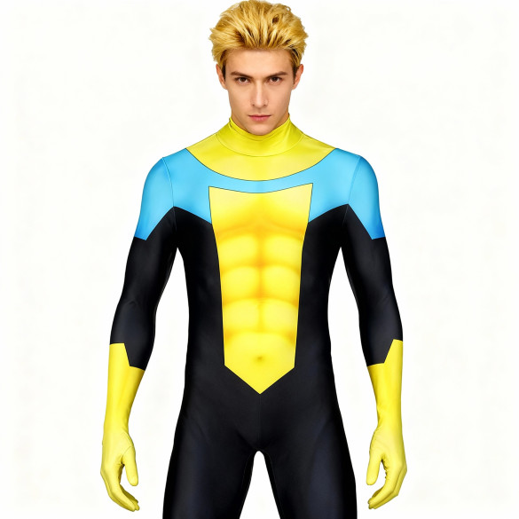 Transform into your favorite superhero with the Invincible Comic Style Original Suit Costume, featuring a striking yellow, black, and blue muscle pattern. Perfect for cosplay events, comic conventions, or Halloween, this bodysuit ensures you stand out in any crowd. Embrace your inner hero and showcase your love for the Invincible series with this eye-catching costume!