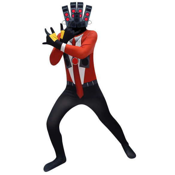 Transform into the ultimate Skibidi Toilet Infected Titan Speakerman with this eye-catching bodysuit costume. Perfect for cosplay events or Halloween, this unique design captures the essence of the iconic character, ensuring you stand out in any crowd. Made for comfort and style, this costume is a must-have for fans looking to make a bold statement.