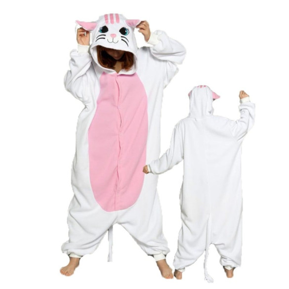Transform your little one into a purr-fectly adorable feline with this Kids White Cat Costume. This cozy onesie jumpsuit is the ideal choice for your child's next cosplay event or Halloween party. Let your child unleash their inner kitty with this fun and comfortable costume.