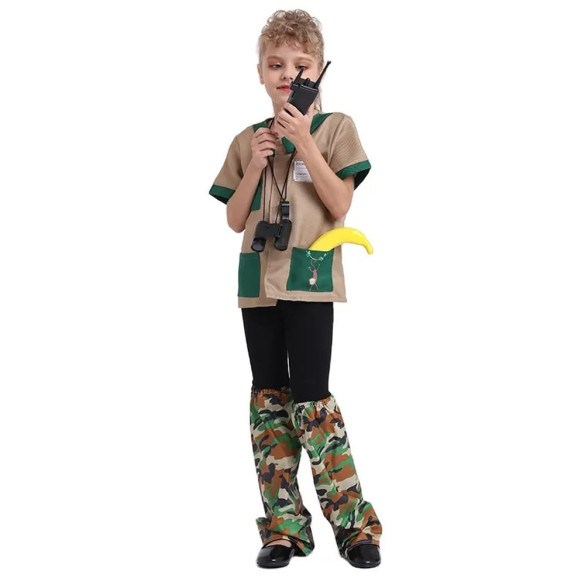 Experience the wild adventures of the jungle with our Safari Jungle Explorer Costume! Perfect for kids who dream of becoming a fearless zookeeper, this cosplay outfit will transport them to a world full of excitement and intrigue. Get ready to embark on a thrilling Safari expedition and unleash your child's imagination with our high-quality safari costume.