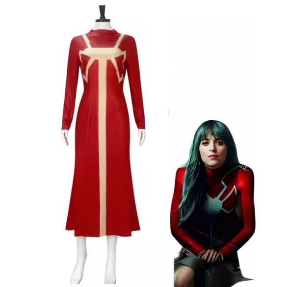 Transform into the mysterious and powerful Madame Web with this stunning red web dress costume. Perfect for cosplay events or Halloween parties, this eye-catching ensemble will have you standing out in any crowd. Embrace your inner superhero and channel Madame Web's enigmatic energy with this striking costume.